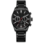 Integra movimiento de cuarzo de alta precisión, visualización analógica de tres manecillas, calendario de fecha, caja robusta de acero inoxidable, cristal resistente a rayaduras, pulso metálico ajustable y resistencia al agua