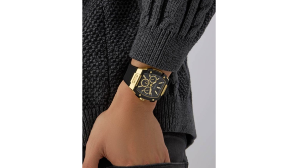 Integra movimiento de cuarzo preciso, caja rectangular robusta con detalles modernos, subesferas de día, fecha y 24 h, cristal mineral resistente y correa de silicona flexible, con resistencia a salpicaduras para uso diario confiable