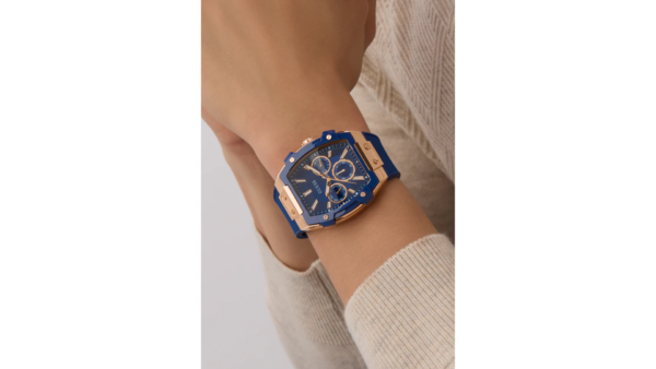 Integra movimiento de cuarzo altamente preciso, esfera con subesferas de día y fecha, cristal mineral resistente a impactos, caja rectangular robusta y resistencia al agua hasta 50 m, ideal para uso diario con diseño contemporáneo y rendimiento confiable