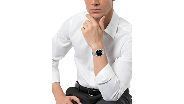 Integra movimiento de cuarzo, visualización analógica simple, cristal mineral resistente a rayaduras, caja de 40 mm, brazalete metálico de malla, y resistencia al agua hasta 50 m (uso diario)