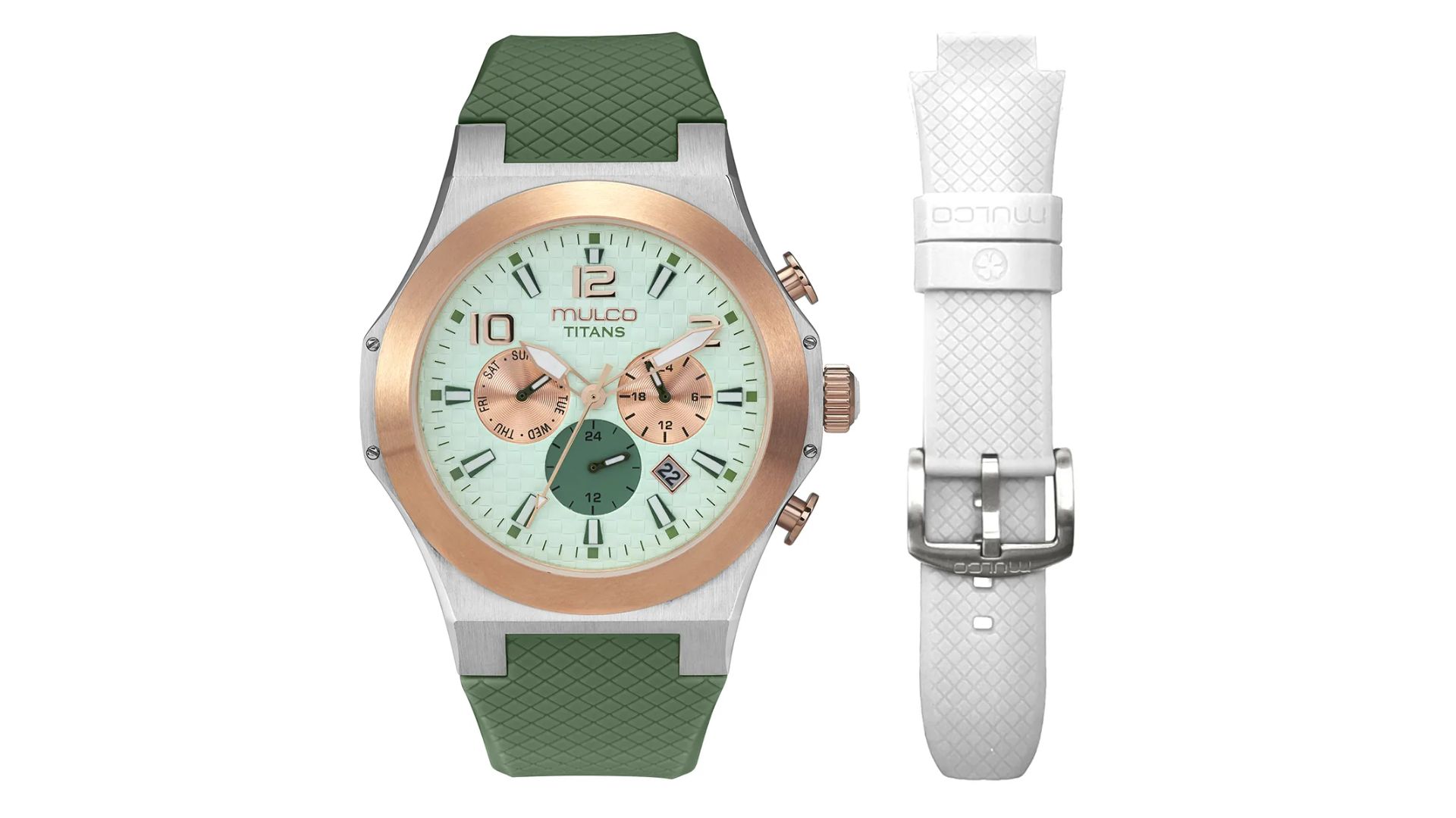Integra movimiento es de cuarzo multifuncional, ofreciendo precisión y durabilidad. Este reloj combina estilo y funcionalidad, siendo ideal para el uso diario y actividades acuáticas