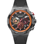 Integra movimiento de cuarzo, caja de acero inoxidable de 46 mm de diámetro y 12.6 mm de espesor, cristal mineral, correa de silicona con cierre de hebilla y resistencia a salpicaduras