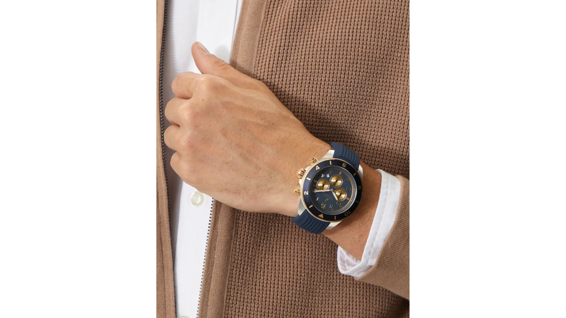 Integra movimiento cronógrafo de alta precisión, ventana de fecha, caja de acero inoxidable de 48 mm con cristal mineral, correa de silicón y resistencia al agua hasta 100 m, ideal para uso diario y actividades acuáticas