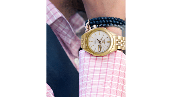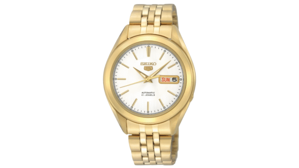 Integra movimiento automático de 21 joyas calibre 7S26 con reserva aproximada de 40 h, visualización de día y fecha, cristal Hardlex resistente a rayaduras y hermeticidad hasta 30 m para uso diario