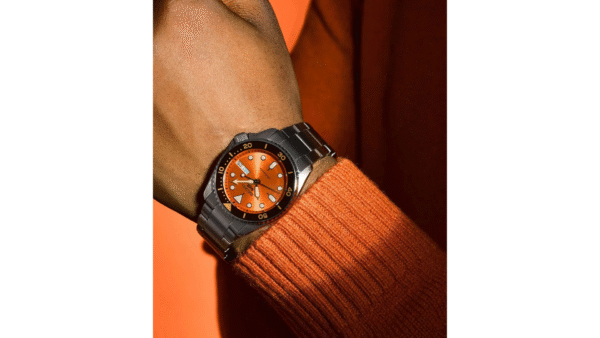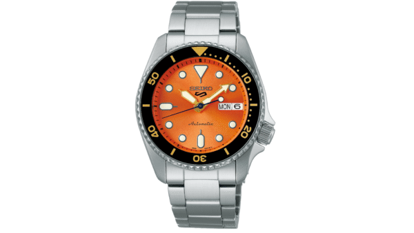 Integra movimiento Calibre 4R36 automático, reserva de marcha de 41 horas, bisel giratorio unidireccional, resistencia al agua de 100 metros y cristal Hardlex