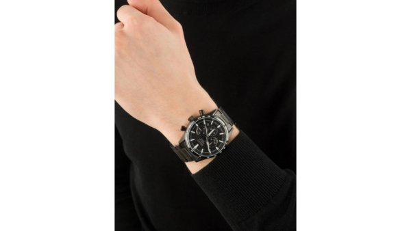 Integra cronógrafo con movimiento de cuarzo calibre 8T63, caja de acero inoxidable de 43 mm con cristal de zafiro, función de cronógrafo hasta 60 minutos, indicador 24 h, sub-segundero, ventana de fecha, bisel taquimétrico, brazalete de acero