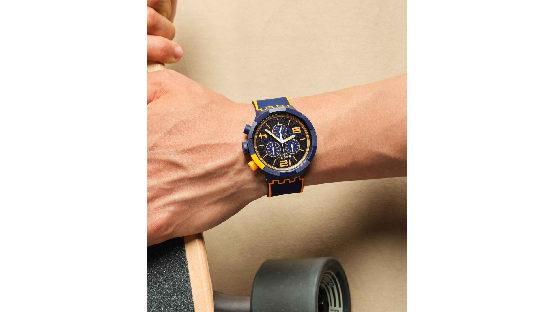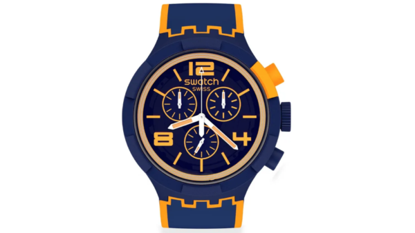 Integra movimiento de cuarzo suizo, función cronógrafo, tecnología SwatchPAY! para pagos sin contacto, caja de 47 mm, pulsera de silicona y resistencia al agua hasta 3 bar (30 m)