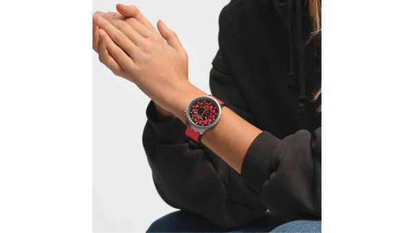 Integra movimiento de cuarzo suizo, caja y correa ligeras en material bi-sourcing, resistencia al agua de 3 bar y diseño minimalista enfocado en funcionalidad diaria confiable