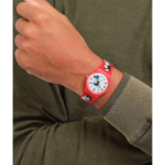 Integra movimiento de cuarzo suizo, caja de 34 mm de diámetro con grosor 8,75 mm, cristal acrílico resistente, y es resistente al agua hasta 3 bar (30 m)