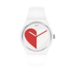 Integra movimiento de cuarzo preciso, caja de plástico blanca, correa de silicona blanca, cristal acrílico, resistencia al agua hasta 30 metros y diseño moderno con detalles rojos que aportan un estilo juvenil y llamativo.