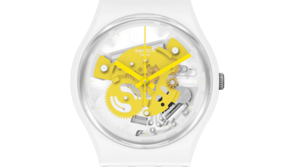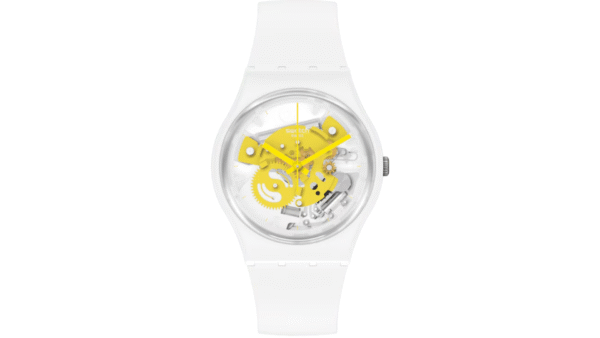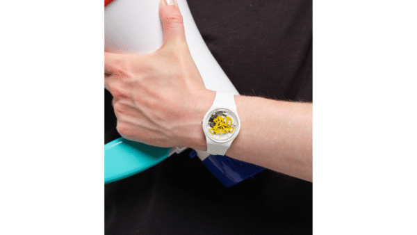 Integra movimiento de cuarzo preciso, materiales biocerámicos, resistencia al agua de 3 bar, cristal plexi y diseño compacto “Time To Yellow Small”, ideal para uso diario urbano con estilo moderno