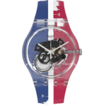 Integra movimiento de cuarzo suizo; caja de plástico de 41 mm; cristal tipo plexiglás; correa desmontable de plástico; resistente al agua hasta 3 bar (30 m); diseño de la colección Expo/Swatch X You