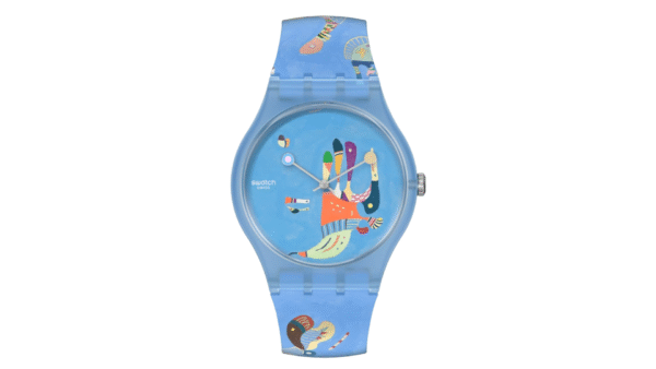 Integra movimiento de cuarzo suizo, resistencia al agua, correa de silicona y diseño inspirado en la obra del artista Vassily Kandinsky