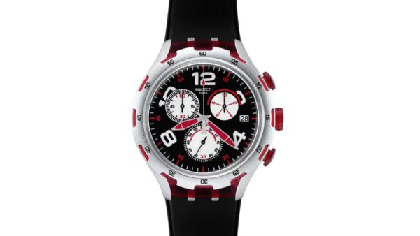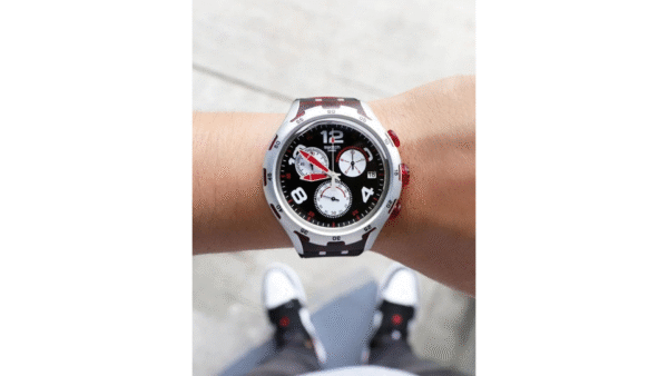 Integra cronógrafo y fecha, movimiento de cuarzo suizo, caja ultraligera de aluminio, correa de silicona, resistencia al agua de hasta 30 m (3 ATM), e indicadores de parada y reinicio del cronógrafo