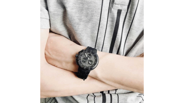 Integra cronógrafo (segundero central, contador 30 min y 1/10 seg), función “ADD/SPLIT”, taquímetro en el bisel y hermeticidad hasta 100 m