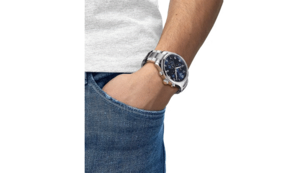 Integra cronógrafo suizo con movimiento de cuarzo ETA G10.212, función de 1/10 segundo y contador de 30 minutos, indicador de fin de batería (EOL), cristal de zafiro resistente a rayaduras y hermeticidad hasta 100 m