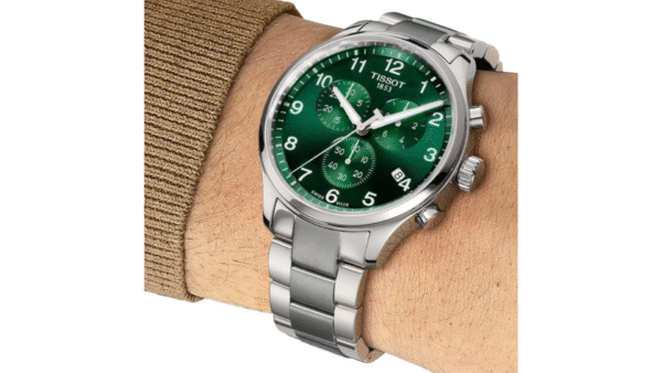 Integra cronógrafo (contadores de 30 minutos y 1/10 segundo), función ADD/SPLIT, indicador de fin de vida de la batería (EOL), caja de acero de 45 mm, cristal de zafiro y hermeticidad hasta 100 m