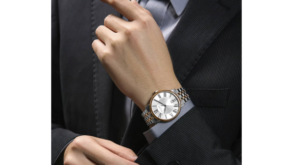 Integra caja de acero de 40 mm con cristal de zafiro, indicación de fecha y resistencia al agua de hasta 50 m