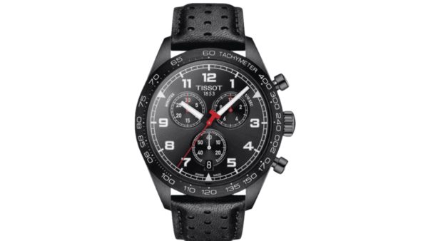 Integra cronógrafo suizo con movimiento de cuarzo ETA G10.212, indicador de fin de batería (EOL), función de 1/10 segundo y contador de 30 minutos, taquímetro en el bisel y hermeticidad hasta 100 m