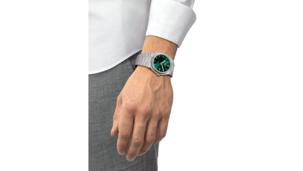 Integra movimiento suizo de cuarzo, caja de acero de 40 mm con cristal de zafiro resistente a rayaduras, funciones de hora, minutos, segundos y fecha, brazalete metálico integrado con cierre mariposa